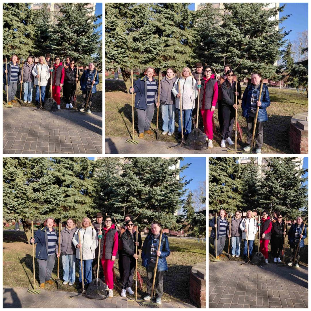 Профсоюзные активисты средней школы 44 присоединились к благоустройству Сквера Строителей и областному субботнику.
