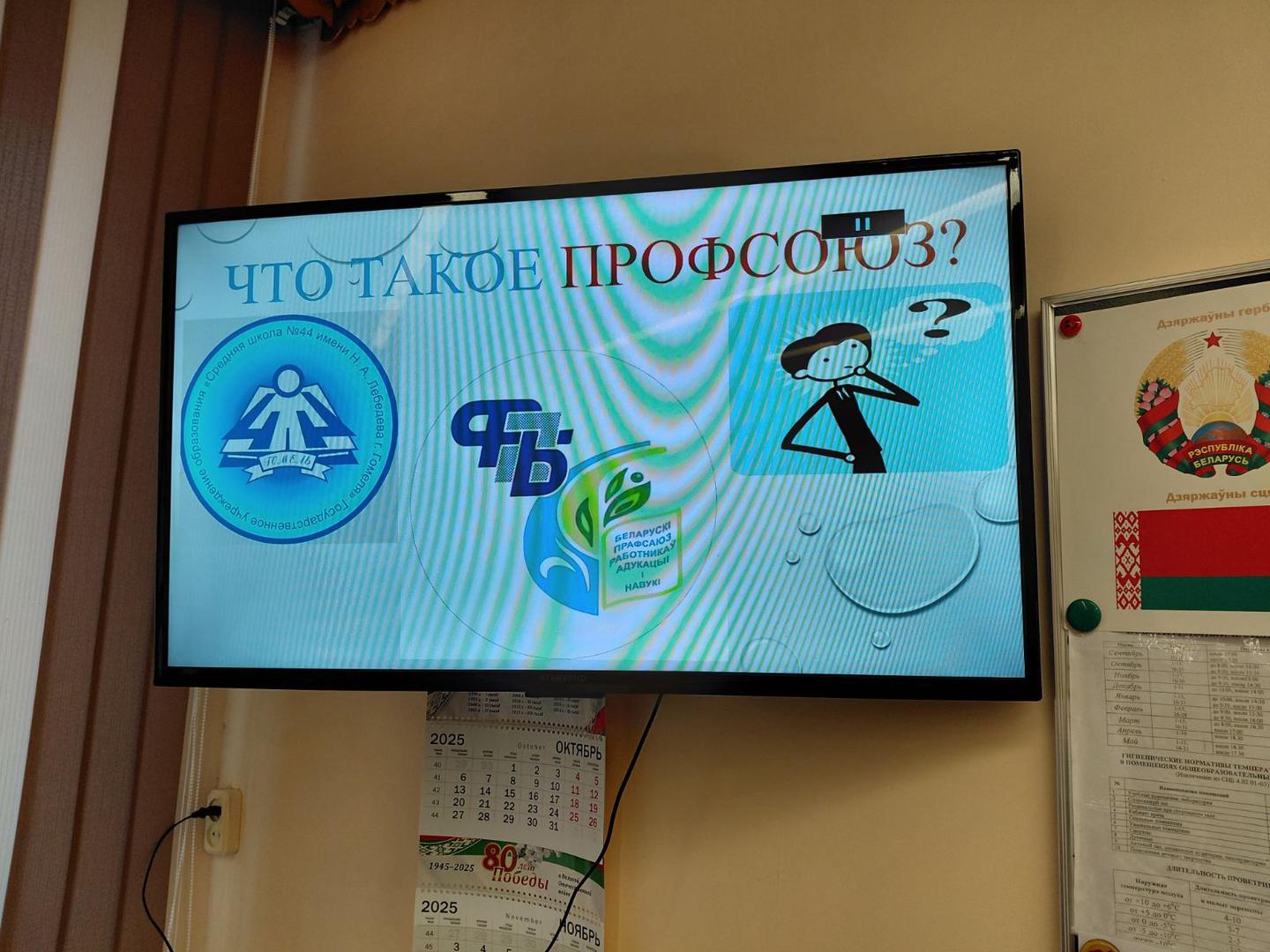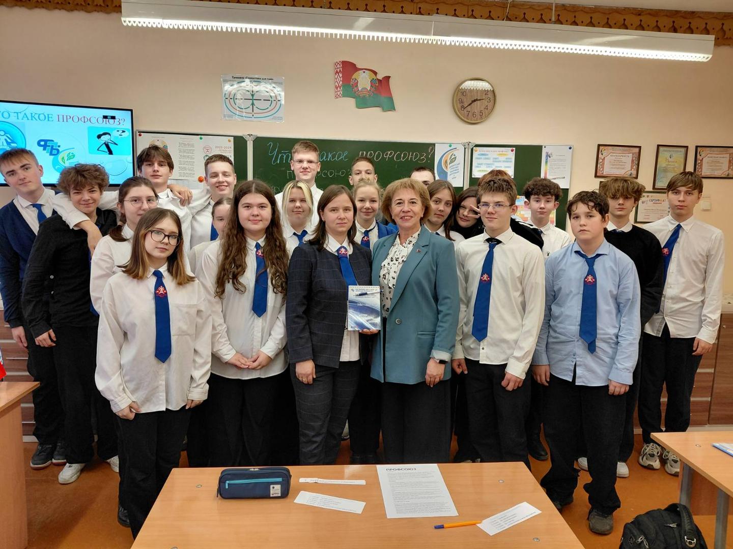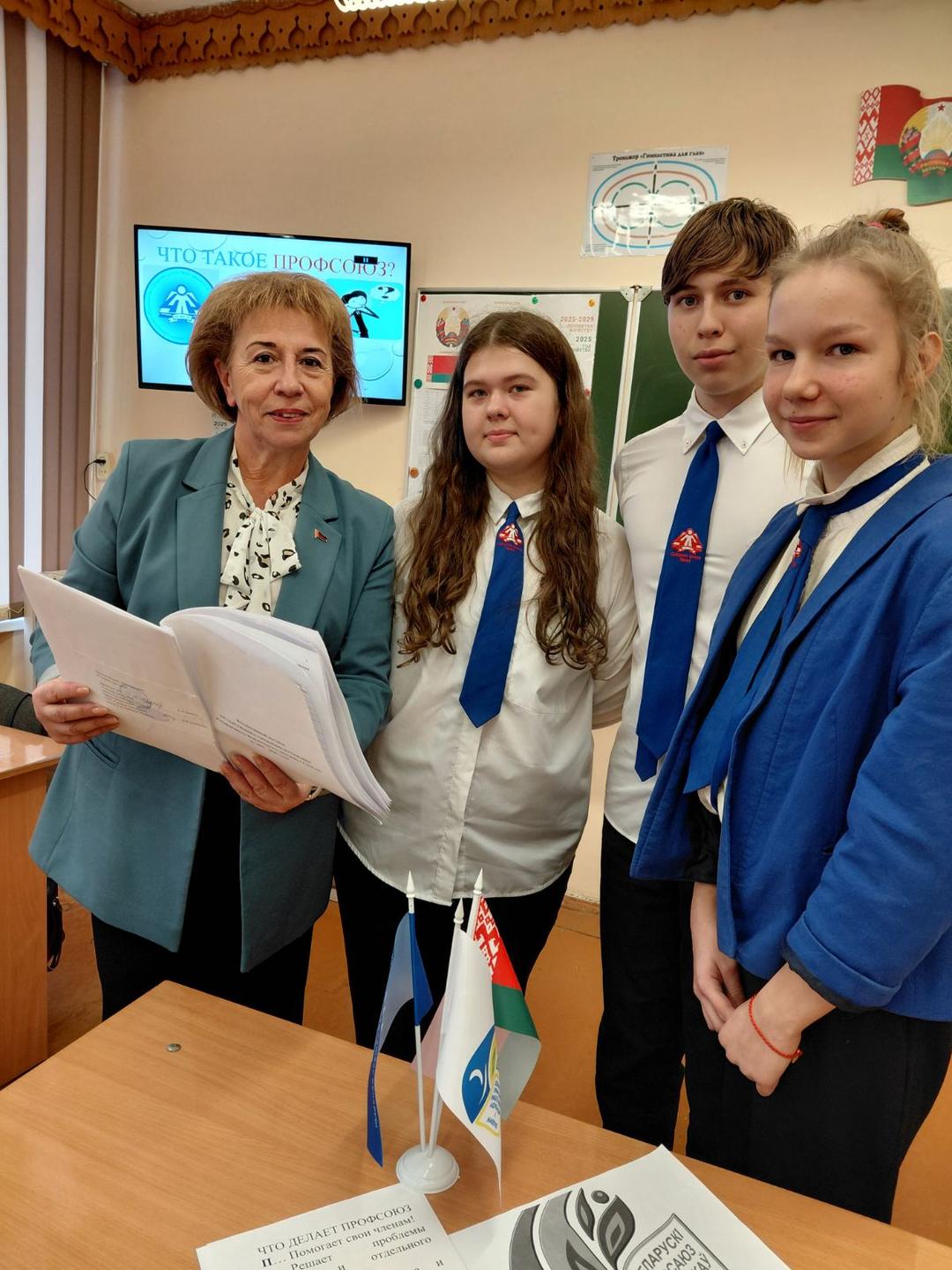 08.01.2026 В 9в классе прошел профсоюзный классный час "Что такое профсоюз?" Провела классный час руководитель Мойсеенко Ирина Юрьевна. На классном часу присутствовали председатель профсоюза школы Тихоненко Наталья Владимировна и Стрижак Татьяна Фёдоровна, председатель Железнодорожной районной г. Гомеля организации Белорусского профессионального союза работников образования и науки. Ребята в интересной диалогов форме узнали о том, что такое профсоюз, какие есть гарантии у члена профсоюза и как работает эта организация. Интересно, познавательно, достойно!